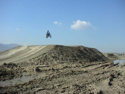 John hade en annan kund idag, en amerikan vid namn André, som körde den 2004 Honda CRF250 jag testade på Cahuilla igår. Honom råkade jag tyvärr köra av banan när jag försökte mig på en omkörning av två förare samtidigt i en höger-vänster-höger S-kurva med ett litet dubbelhopp mitt i, men som tur var såg han inte att det var jag. Han vurpade inte i alla fall, tror jag...