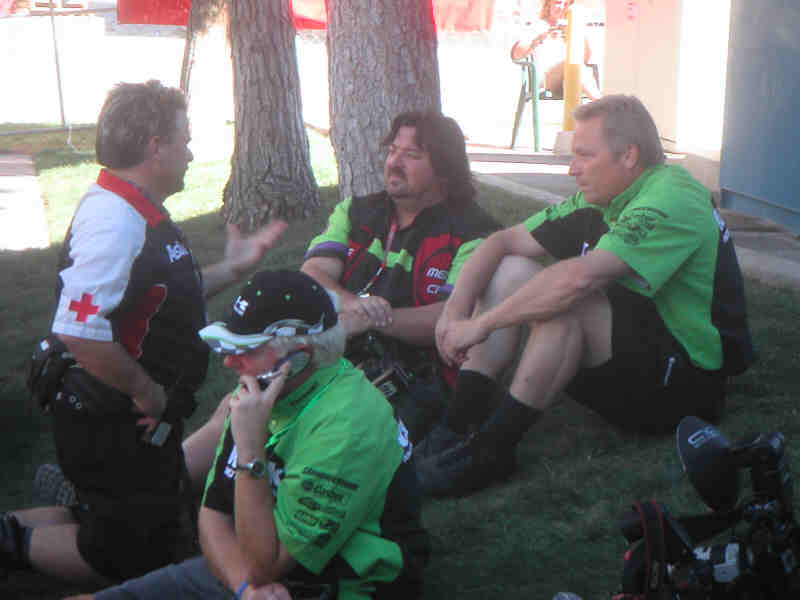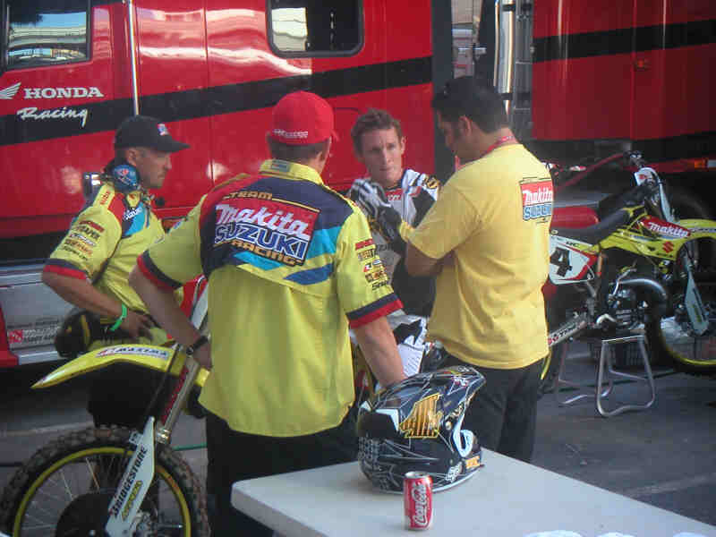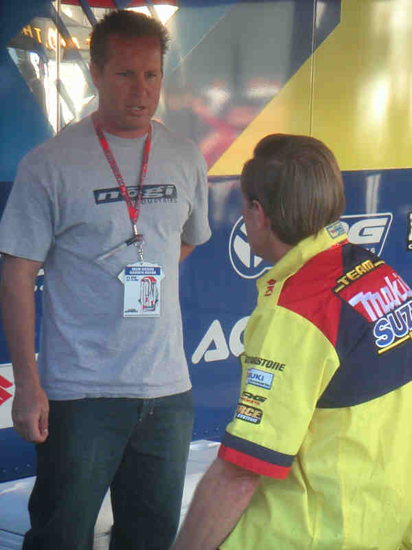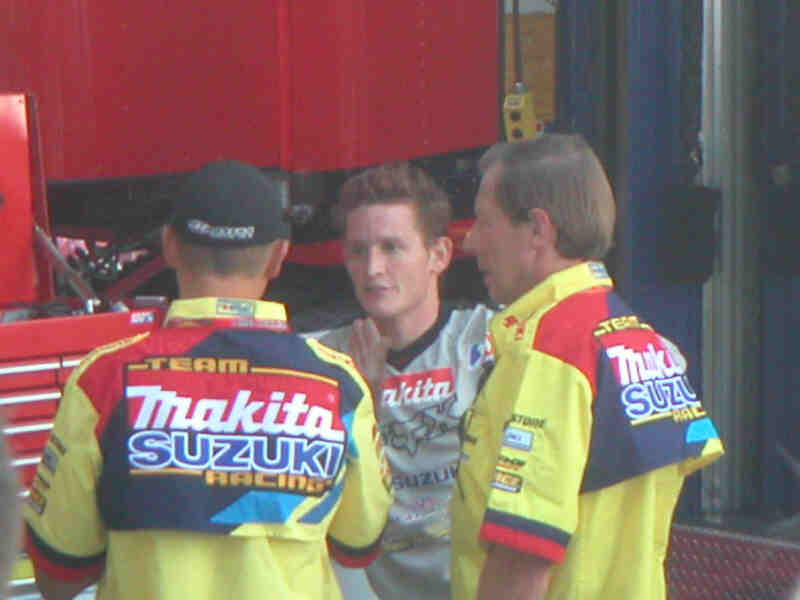 RC diskuterar setup med sin mekaniker Mike Gossellar och Roger Decoster.