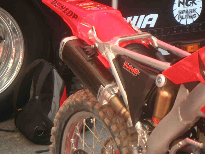 Andrew Shorts fabriks-CRF250 hade självklart dubbla ljuddämpare i kolfiber från